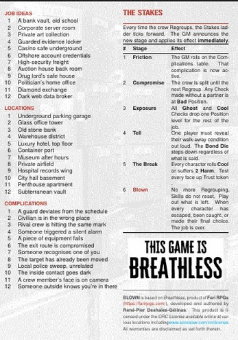 BLOWN is based on Breathless, product of Fari RPGs (farirpgs.com/breathless), developed and authored by René-Pier Deshaies-Gélinas, This product is licensed under the ORC License available online at various locations including www.azoralaw.com/orclicense. All warranties are disclaimed as set forth therein.