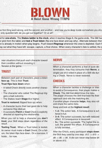 BLOWN is a one-shot TTRPG about a heist that has already gone wrong.