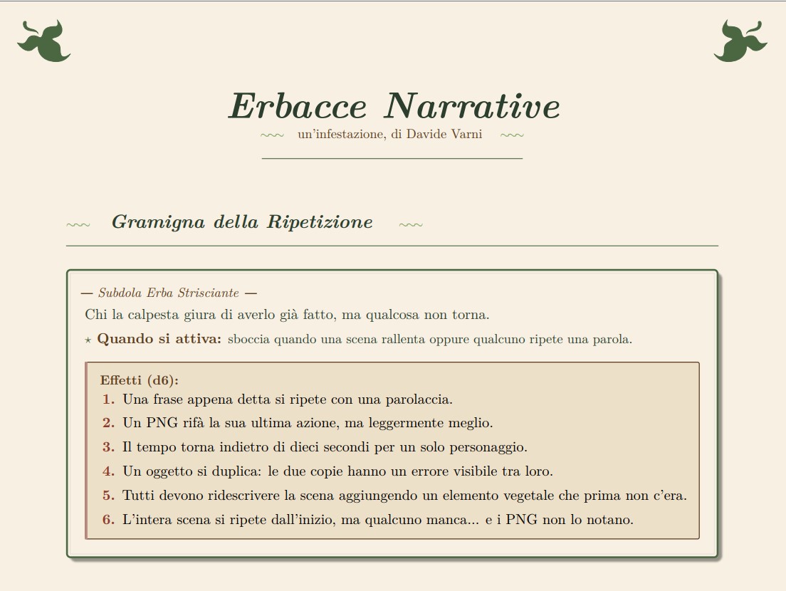 Dato che si parla di giardini, i giardini vanno curati, altrimenti si riempiono di erbacce, come quelle del contributo, 3 erbacce... magiche? Maledette? Forse solo motori narrativi per rendere le cose più complicate e piccanti.